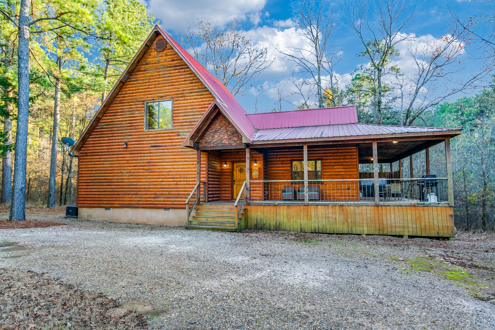 Enjoy the wood burning fire pit on the gravel grounds. The gas cook grill (propane provided) and hot tub are on the back porch.