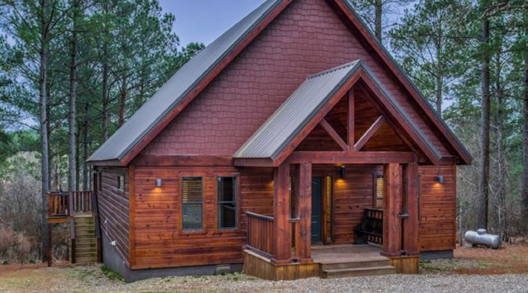 Twice as Nice is a two-bedroom cabin for people who appreciate luxury living while enjoying the serene outdoors.